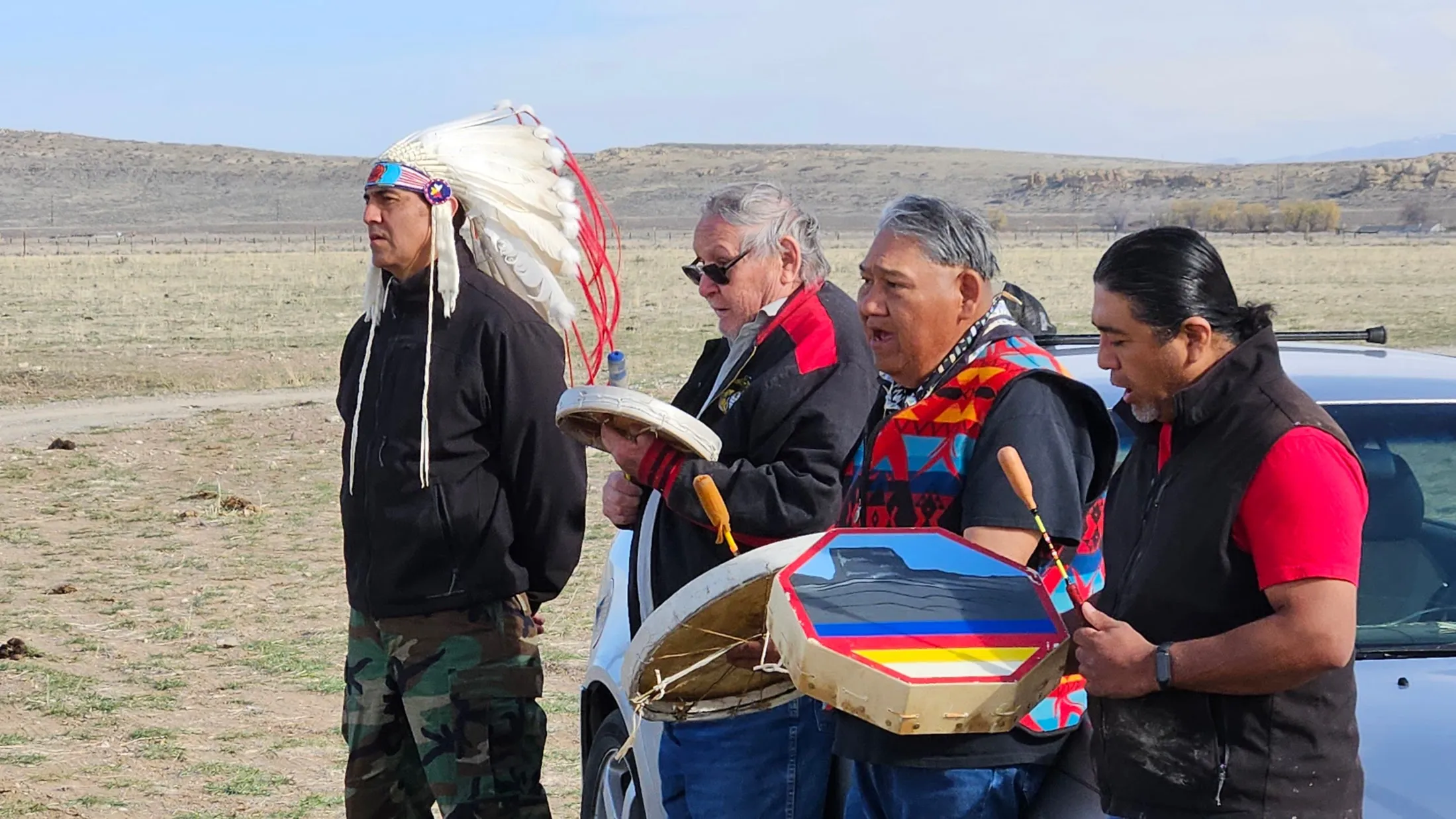 Eastern Shoshone Elders welcome the new additions with a song and prayer before the gate is opened. Within seconds, all the buffalo, new and old, have disappeared over the ridge and out of sight.